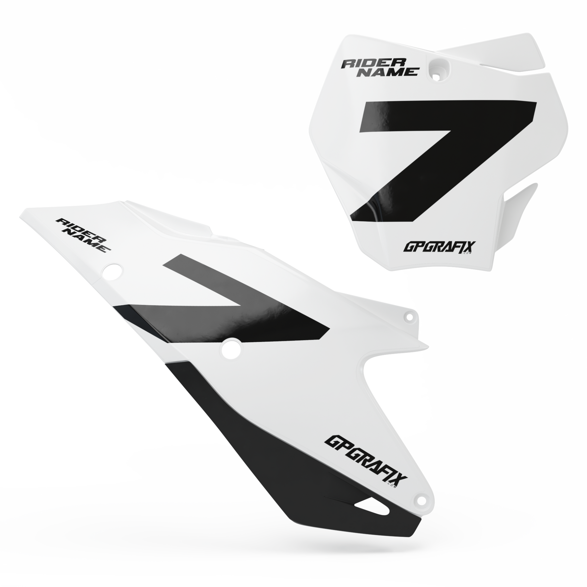 Using the order menu please provide us with your bike model, cc and year. Enter your rider name and number, name and number fonts and number/background colours. If no name/number is required, please input ‘No’. You can also upload any logos that you would like added to your graphics. Wether it be a personal sponsor or just for fun!