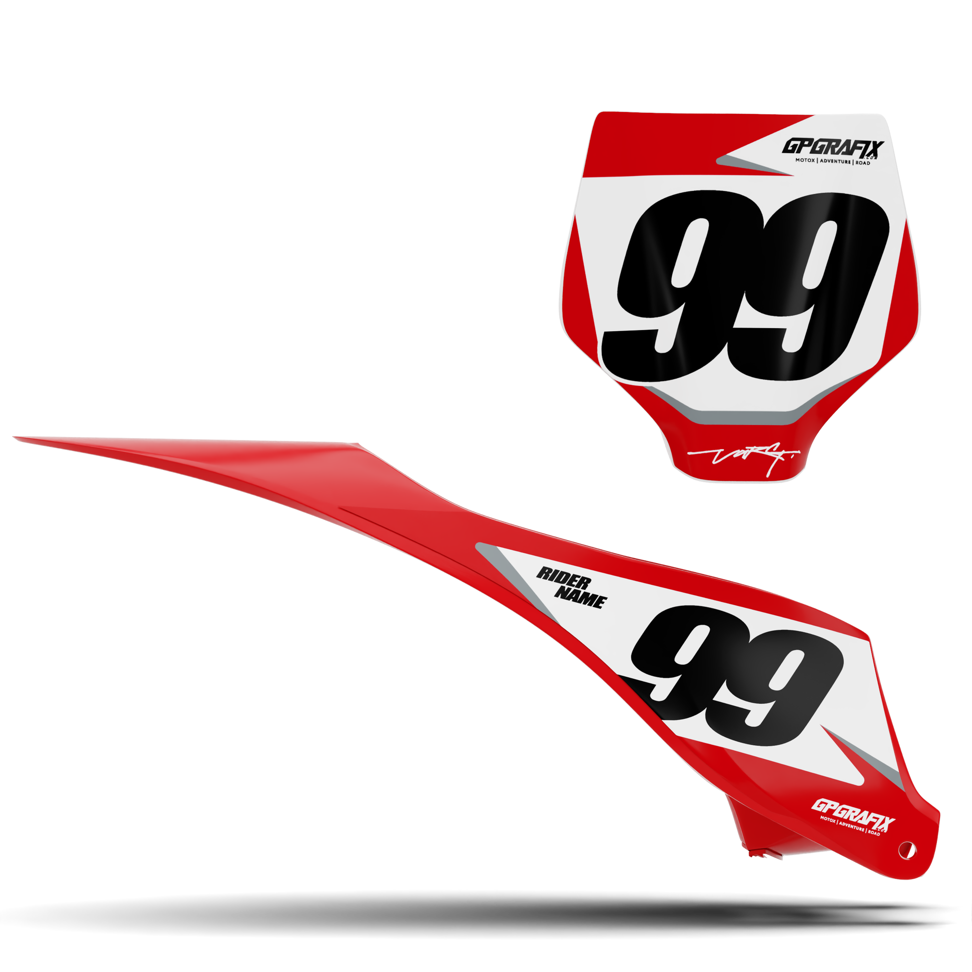 Using the order menu please provide us with your bike model, cc and year. Enter your rider name and number, name and number fonts and number/background colours. If no name/number is required, please input ‘No’. You can also upload any logos that you would like added to your graphics. Wether it be a personal sponsor or just for fun!