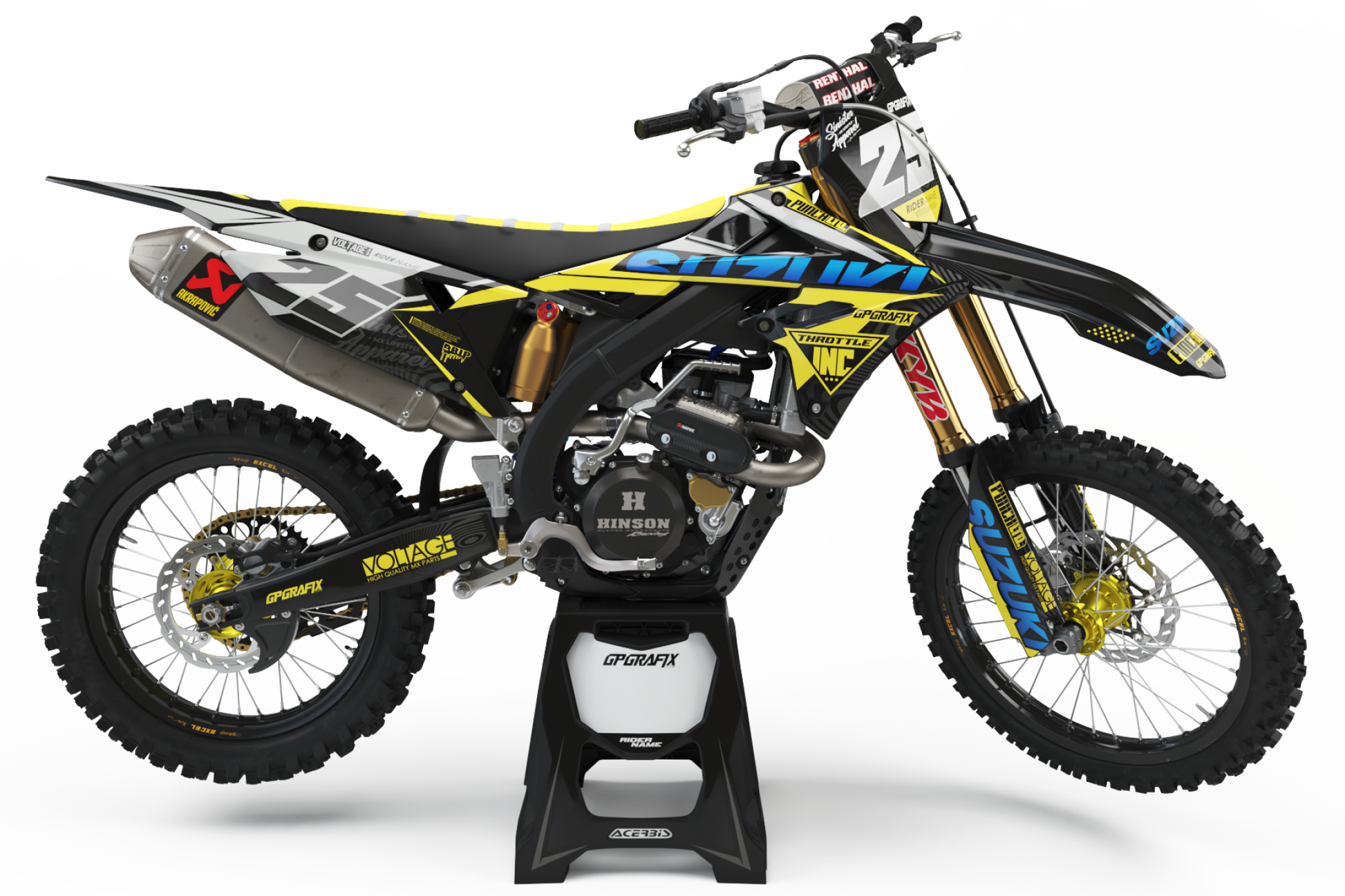 Using the order menu please provide us with your bike model, cc and year. Enter your rider name and number, name and number fonts and number/background colours. If no name/number is required, please input ‘No’. You can also upload any logos that you would like added to your graphics. Wether it be a personal sponsor or just for fun!
